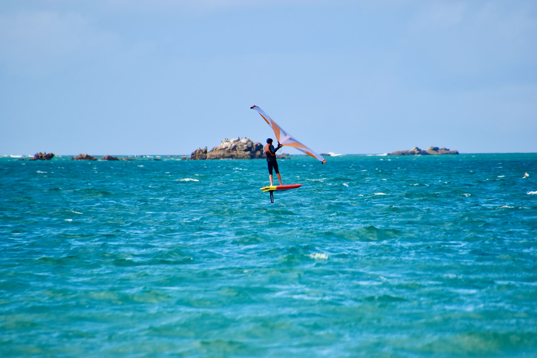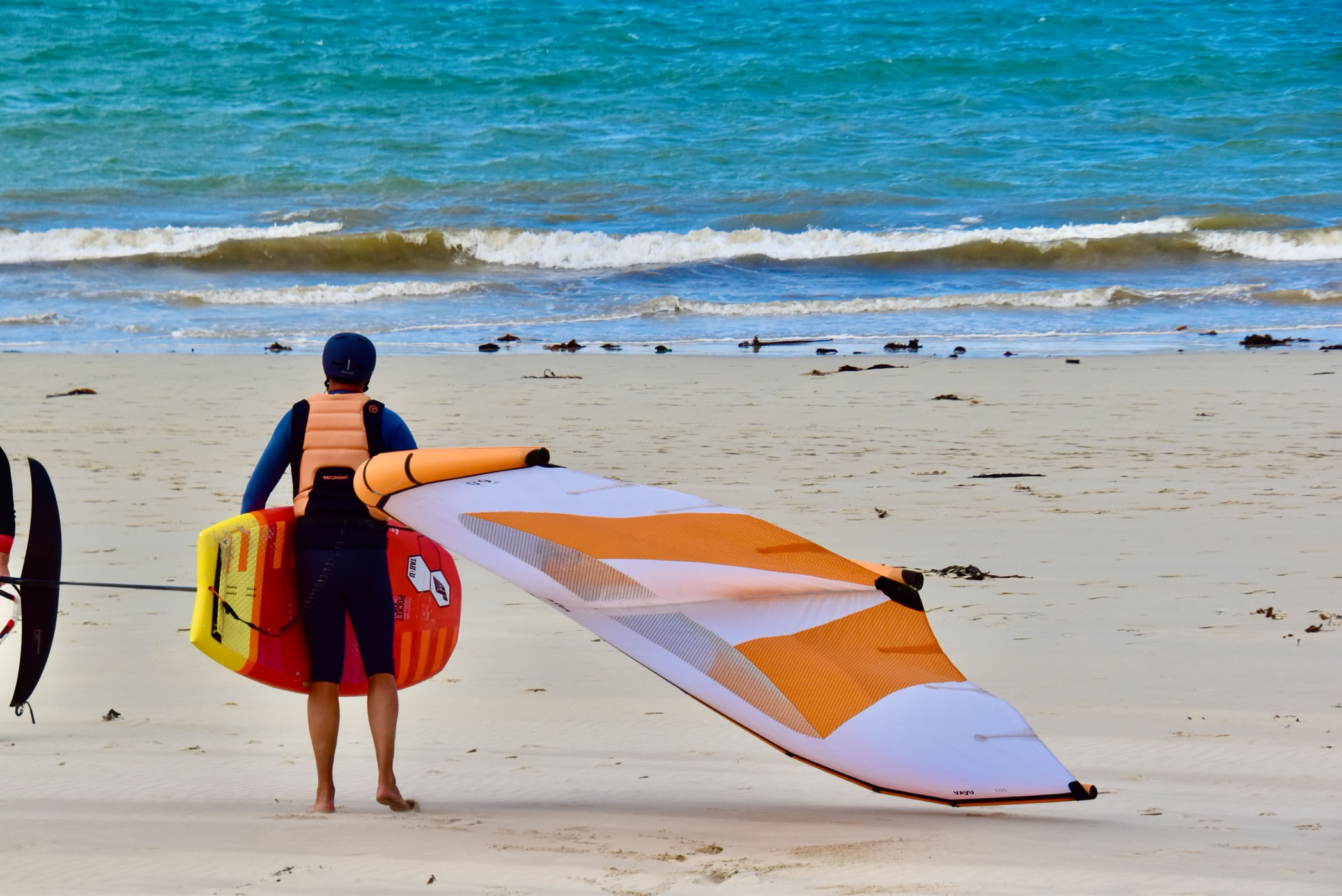 Tegen een uur of twee waren we weer terug op de camping. Het waaide een klein beetje en dan kan Onno gaan wingen. Dat is met een klein zeiltje het water op. Het surfboard heeft een grote mast onderop waardoor als het ware boven de zee kunt surfen. Beetje ingewikkeld om uit te leggen maar heb foto’s genomen zodat je het zelf kunt zien.