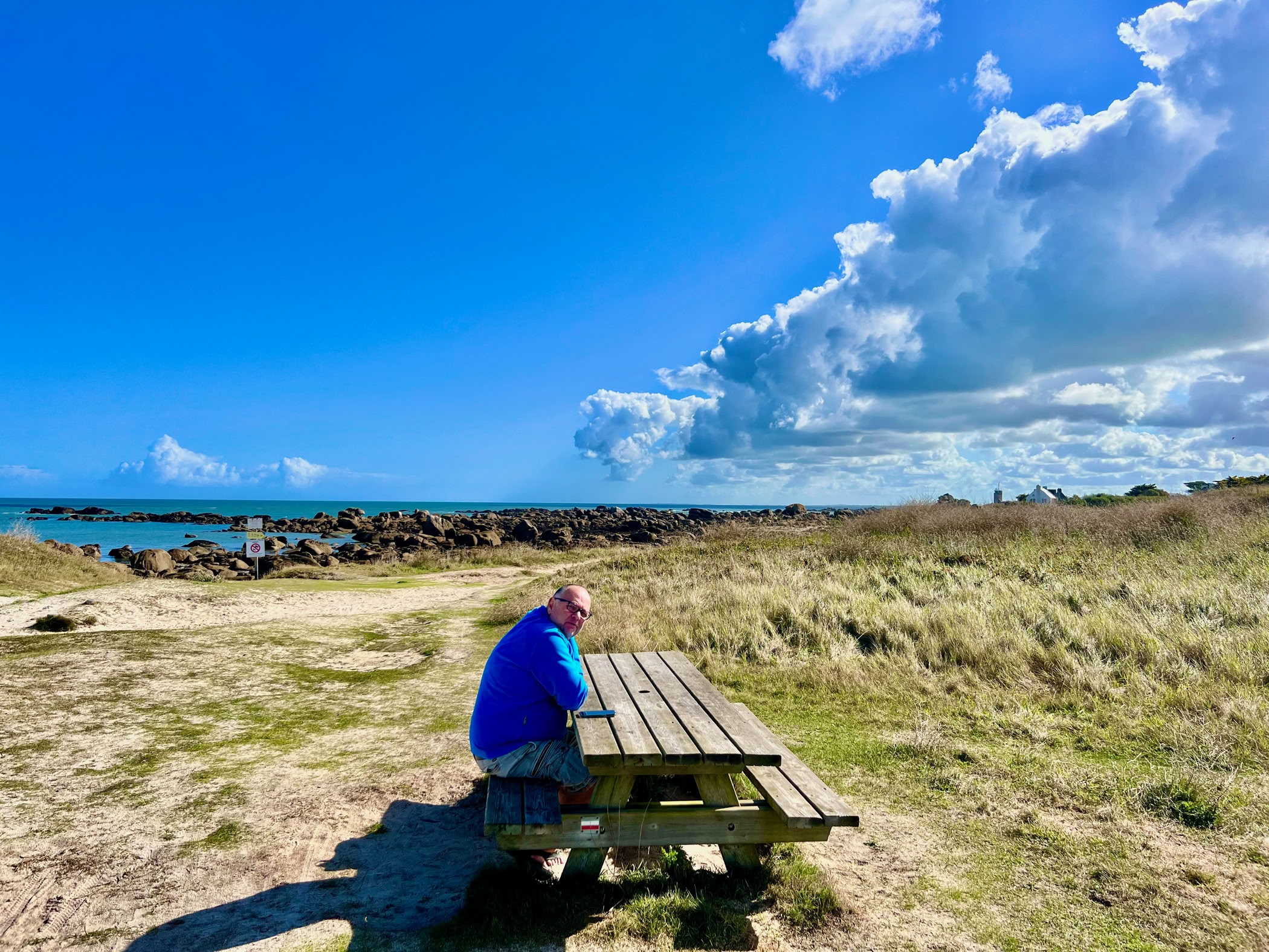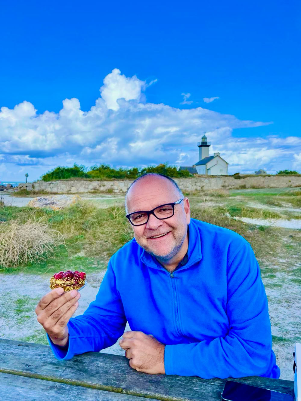 Vandaag zou het een mooie zonnige dag worden. En dat was het ook. In de zon is het heerlijk maar je merkt wel dat de temperatuur langzaam begint de zakken. Maar dat wisten we van te voren. We zijn in onze auto gestapt en eerst langs een bakker gereden voordat we naar Phare de Puntusval zijn gegaan. Daar hebben we bij een picknicktafel ontbeten. Mijn taartje van de dag was een pistache taartje gevuld met room en bovenop zaten verse frambozen. Yummie!!!